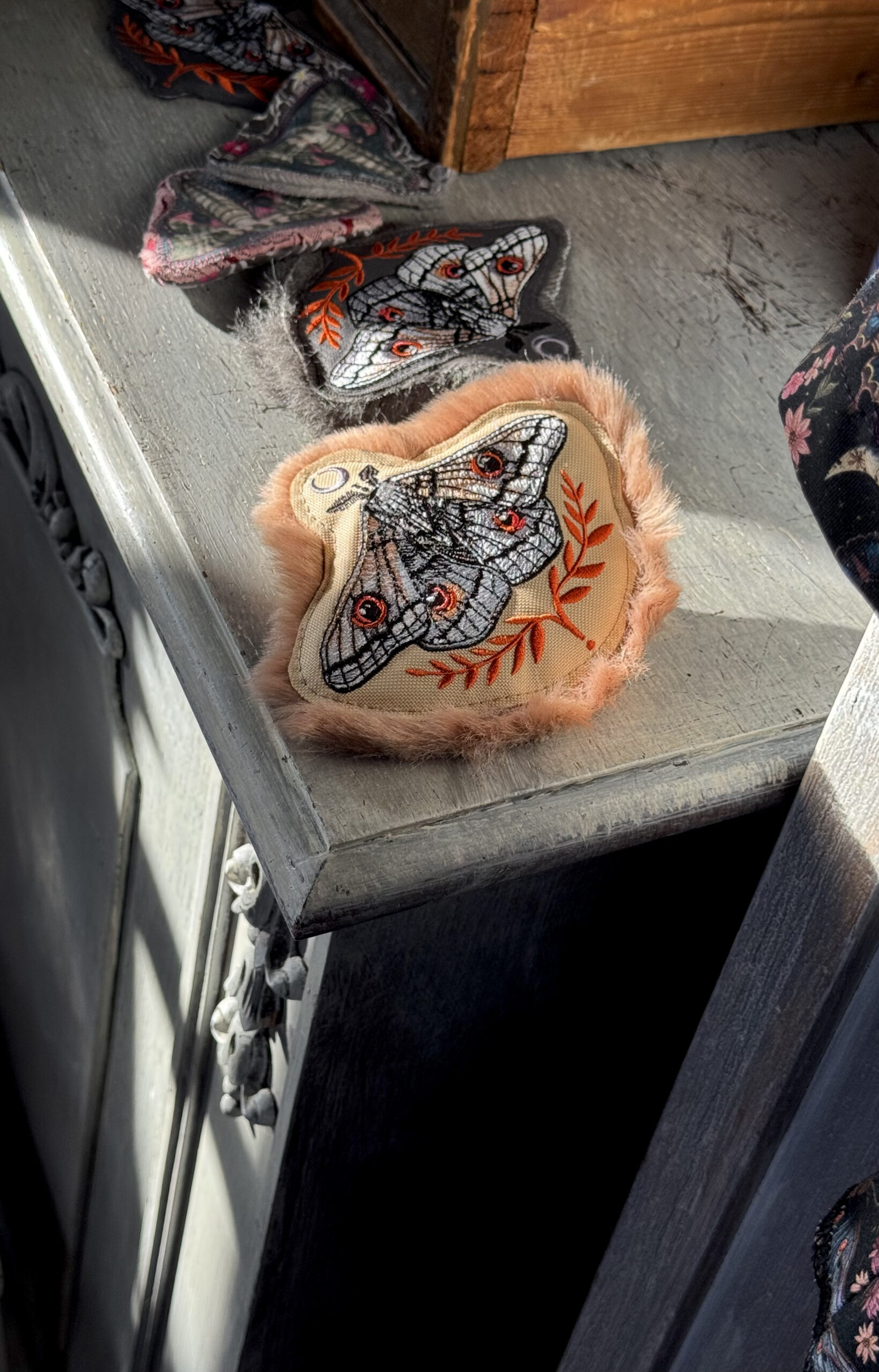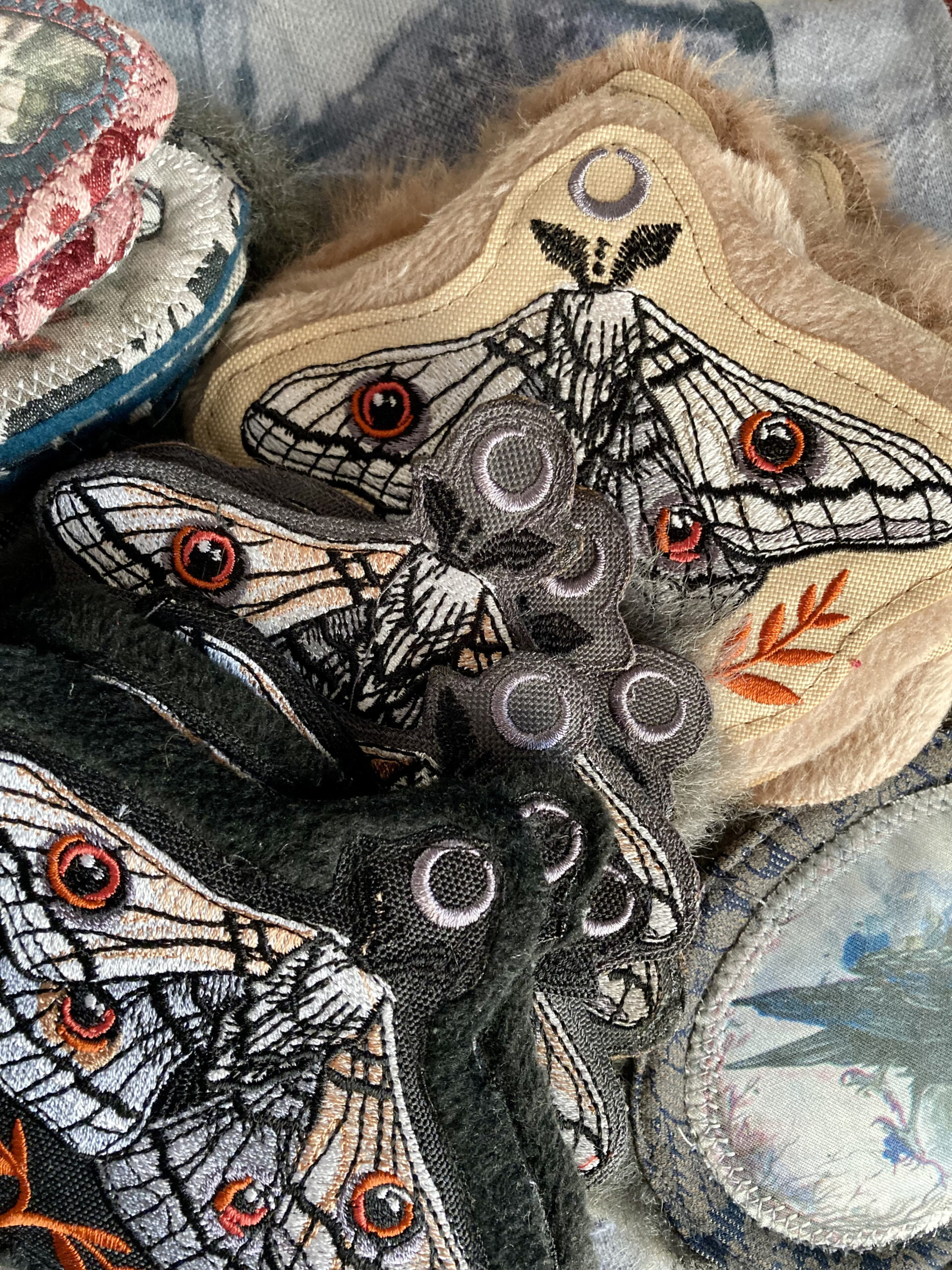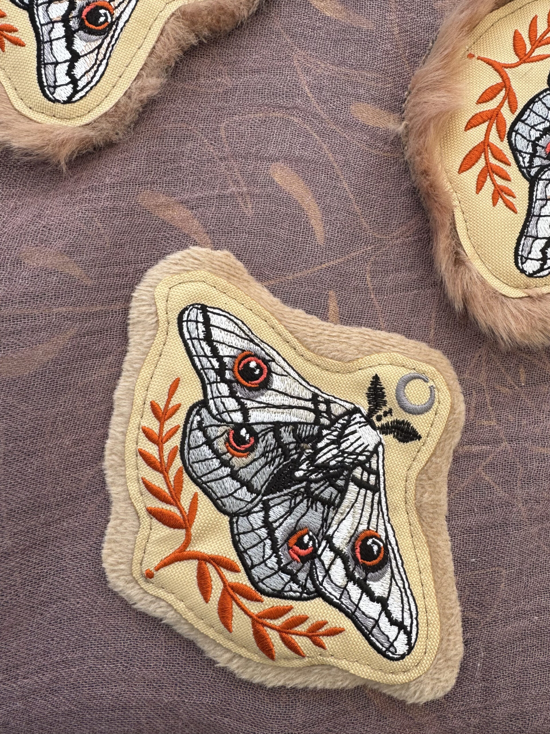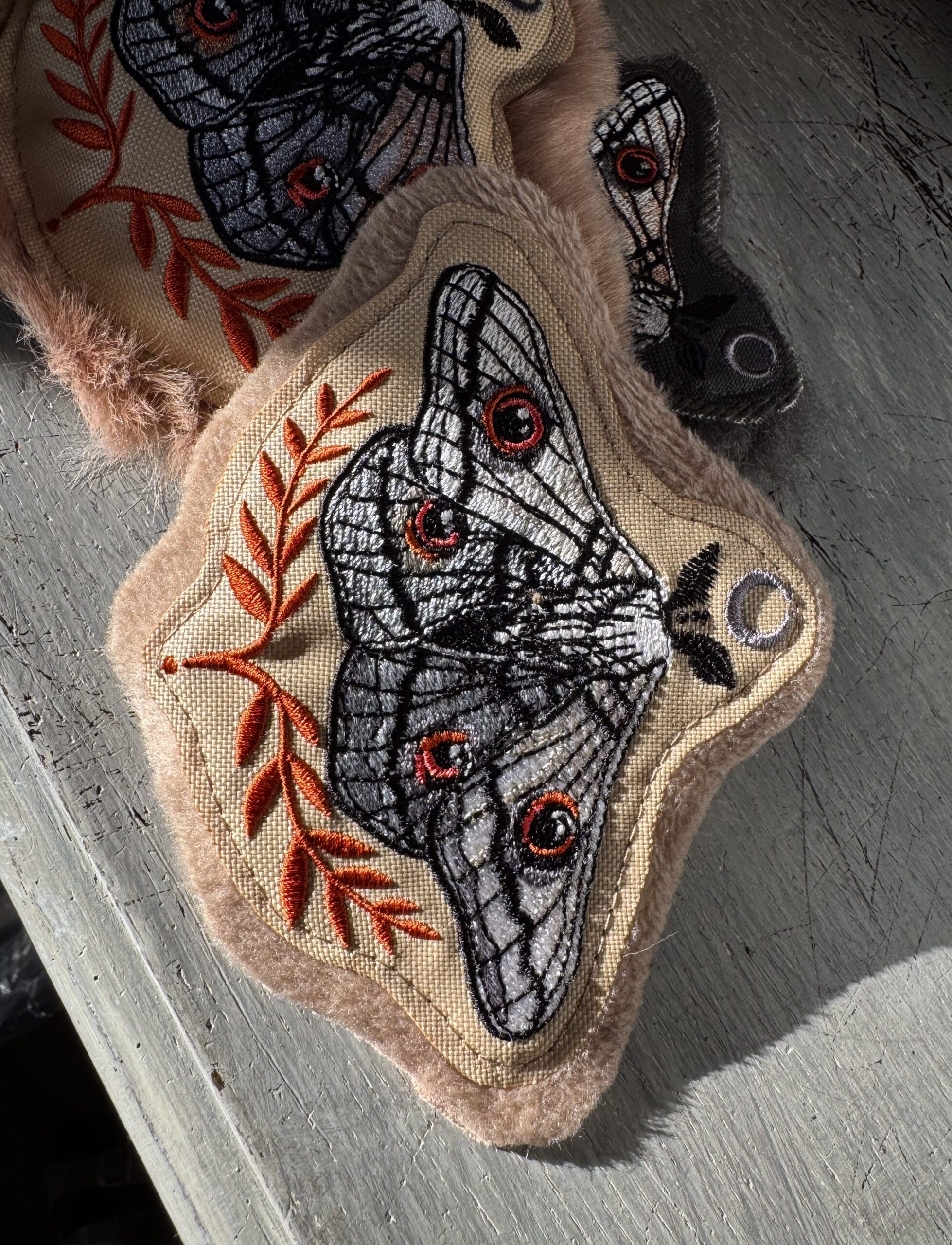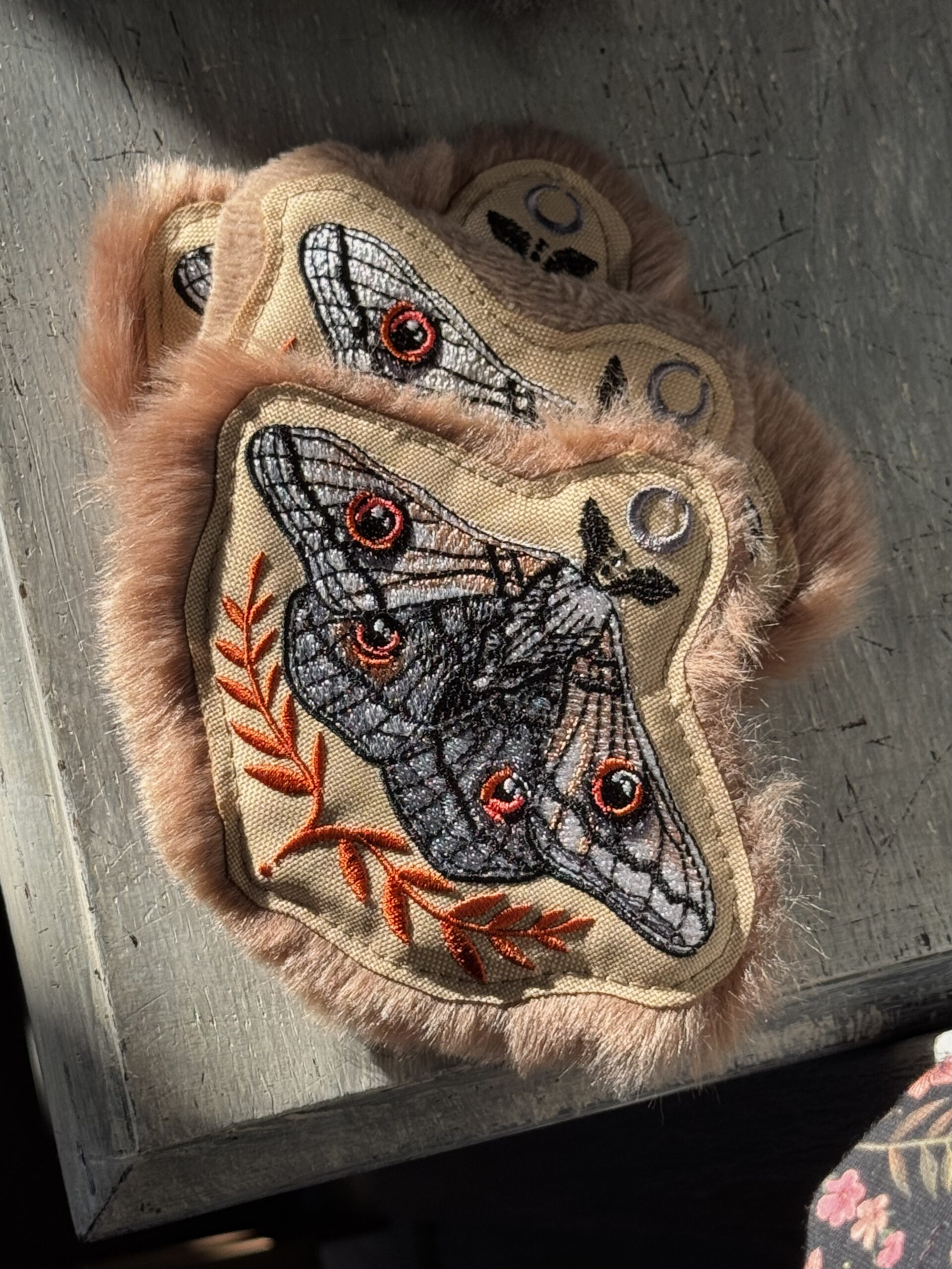 Profi výšivka můry podle autorského akvarelu…varianty – podšitá warmkeeperem nebo kožešinou rubem či lícem navrch